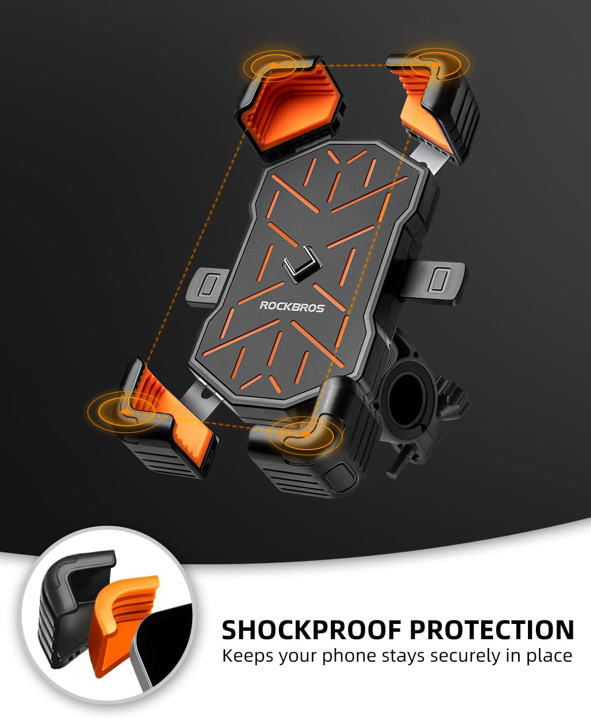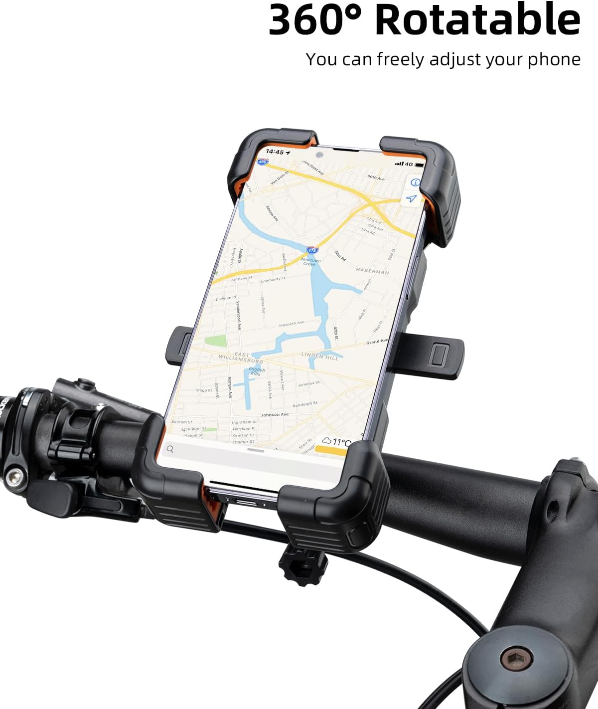 Full Silicone Protection-Shockproof:This bicycle phone holder is equipped with four upgraded thick silicone protective pads to prevent the phone from being scratched. Meanwhile, the four-cornered embrace support securely locks the phone in place. The bike phone holder mount can perfectly secure the phone even on bumpy roads during rides.