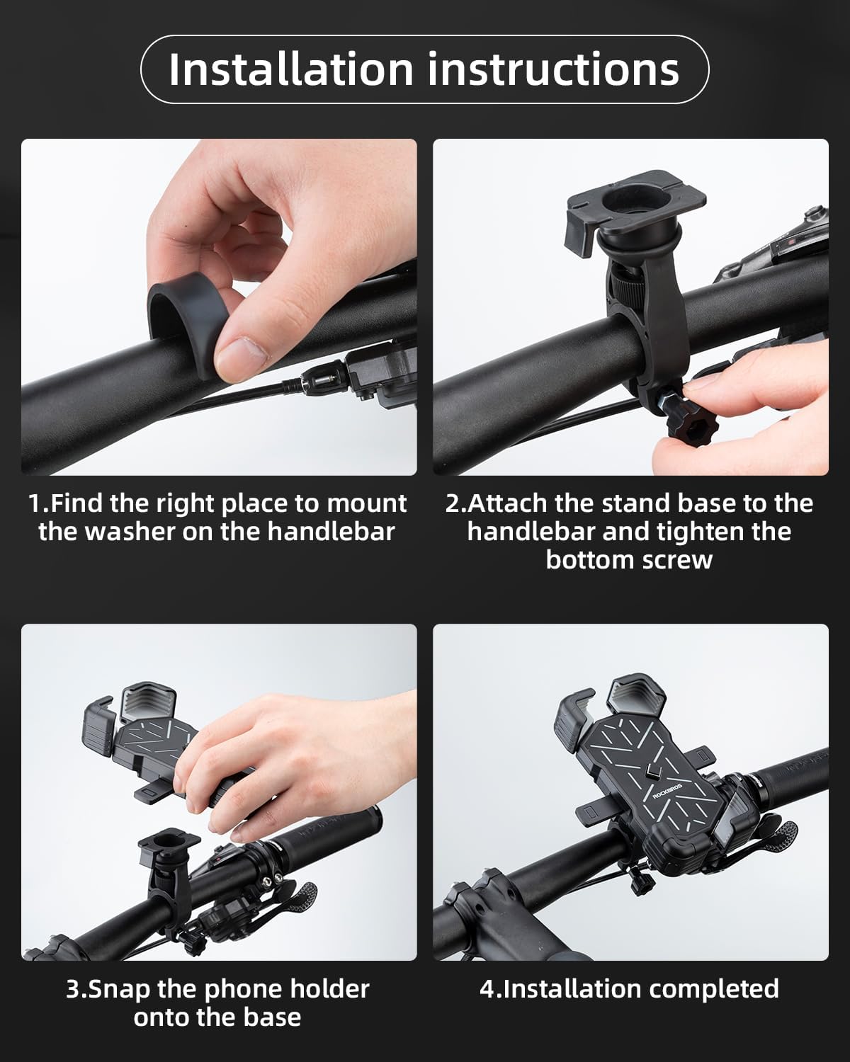Easy Installation:The mount can be attached to the bicycle within seconds. There are two additional rubber ring inserts that can be added or removed based on the handlebar diameter. Suitable for bicycles, motorcycles, baby strollers, shopping carts, electric scooters, and more. Note: Suitable for handlebar diameters of 0.78″ to 1.18″ (20-30mm).