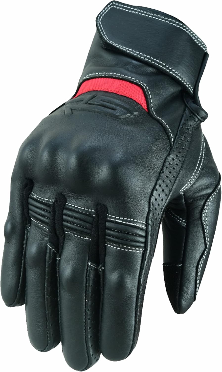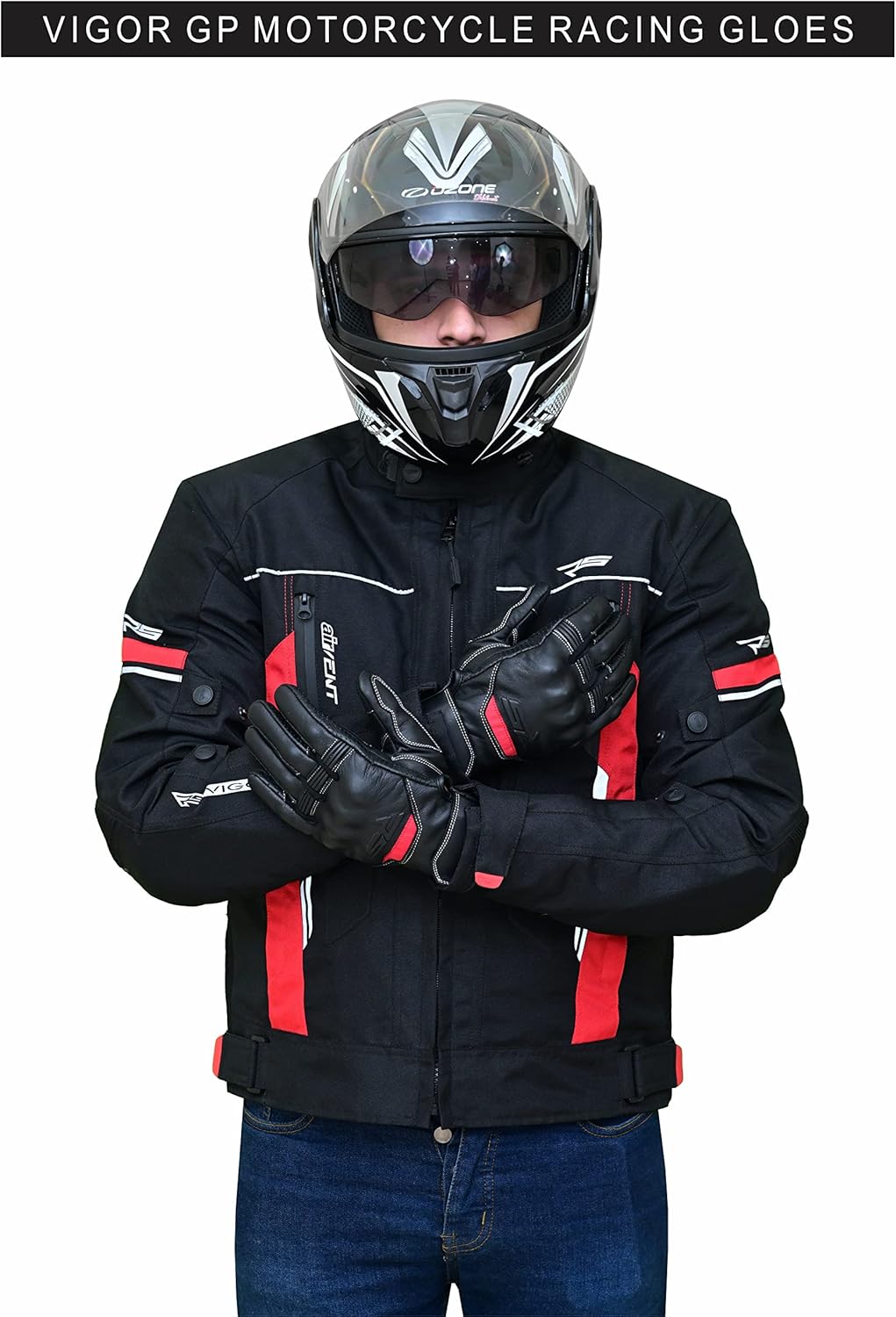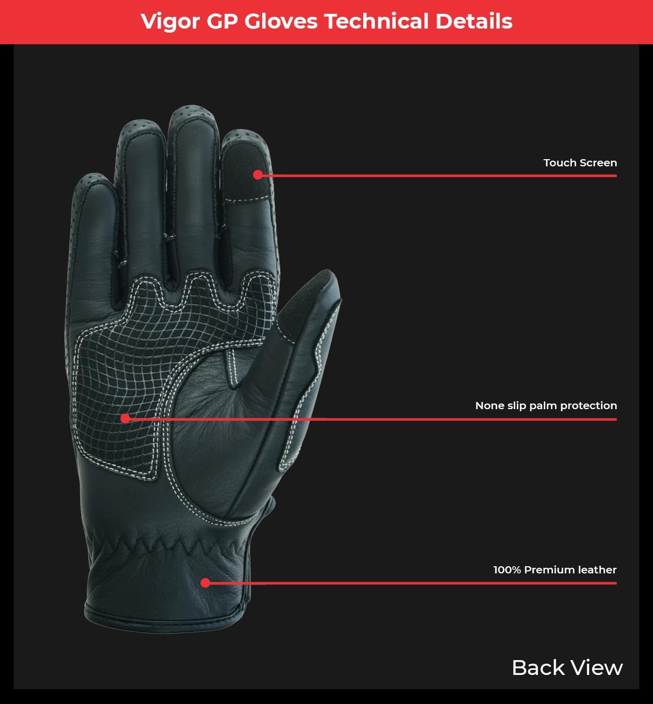 RS Motosports Vigor GP Leather Motorcycle Protective Cruiser Biker Gloves for All-Season, Touchscreen Knuckle Protection Motorbike Gloves Men & Women