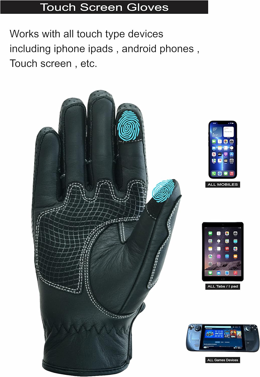 Touchscreen Compatibility: Stay connected on the go. The fingertips of these leather gloves are touchscreen compatible, allowing you to use your smartphone or GPS device without the inconvenience of removing your gloves, ensuring you stay connected without compromising safety.