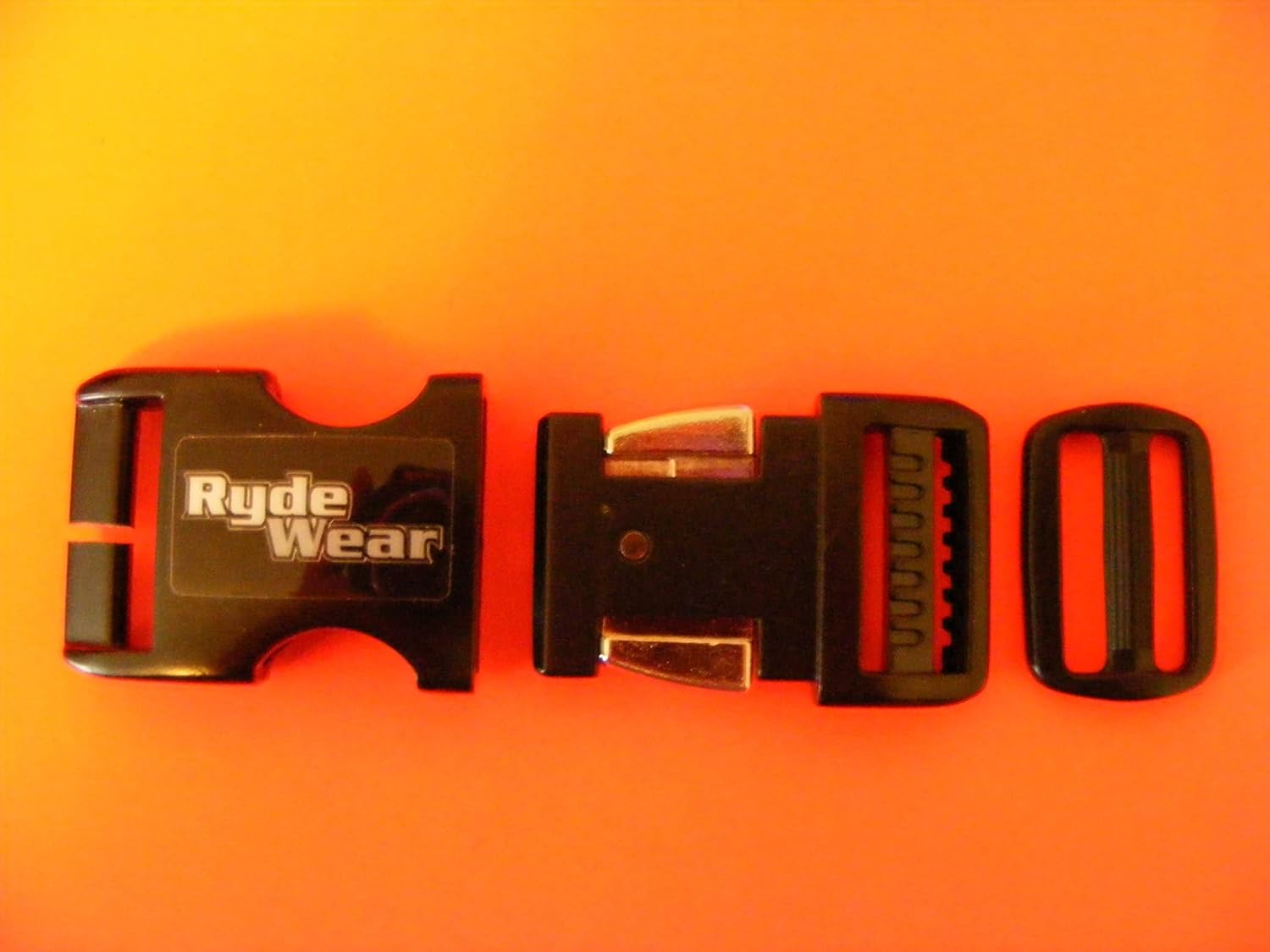 The strap de flapping button on end of your strap will have to just pop it off with screw driver – it is no longer needed with this quick release as it comes with a slide that stops your strap from slapping. Simply hooks on to your D-Ring Fabric loop that holds the D-rings make sure you can fit four plus pencils through the fabric loop that holds your two D-rings on- if you can fit one minumum TO 4 max just seach our larger cut out RydeWear quick release.