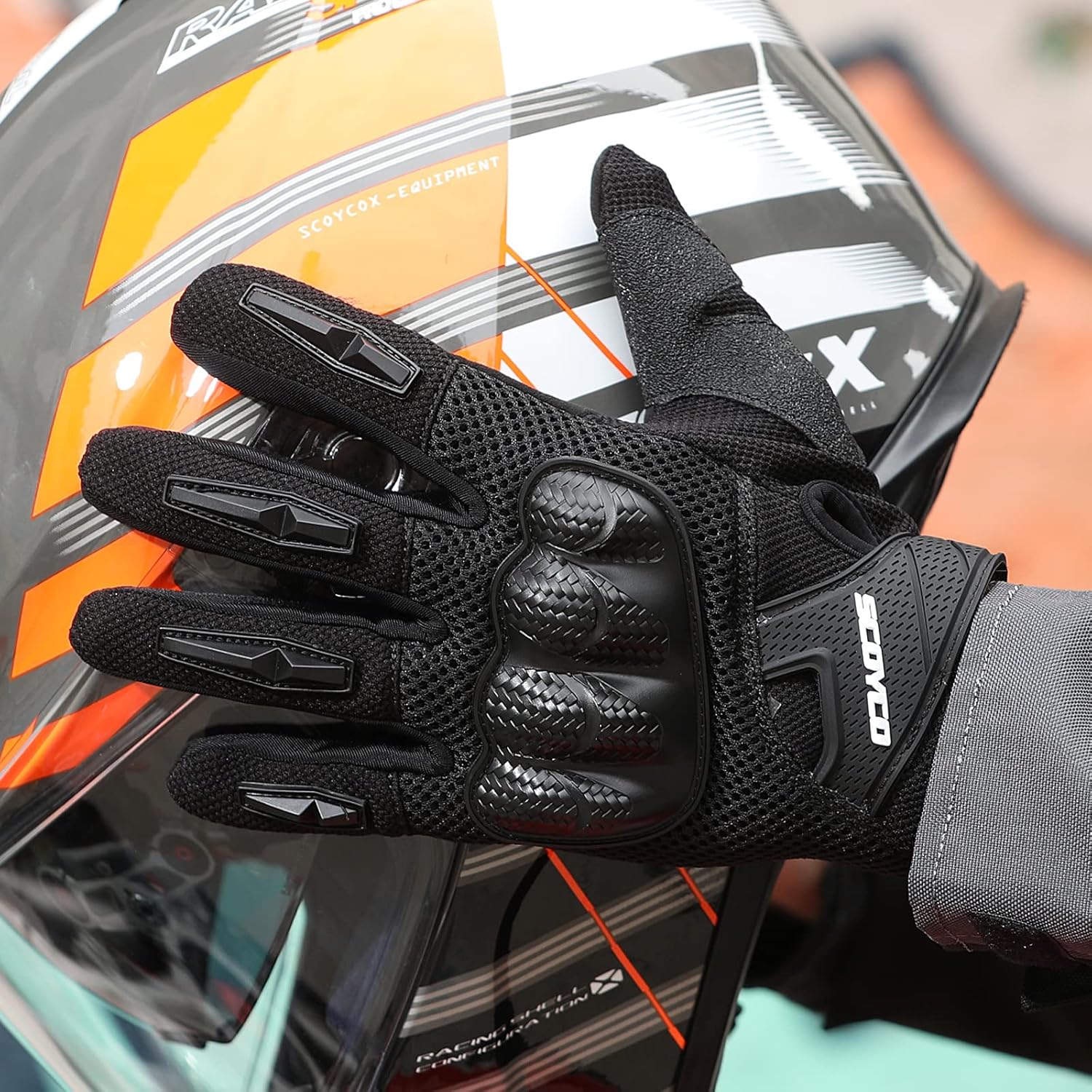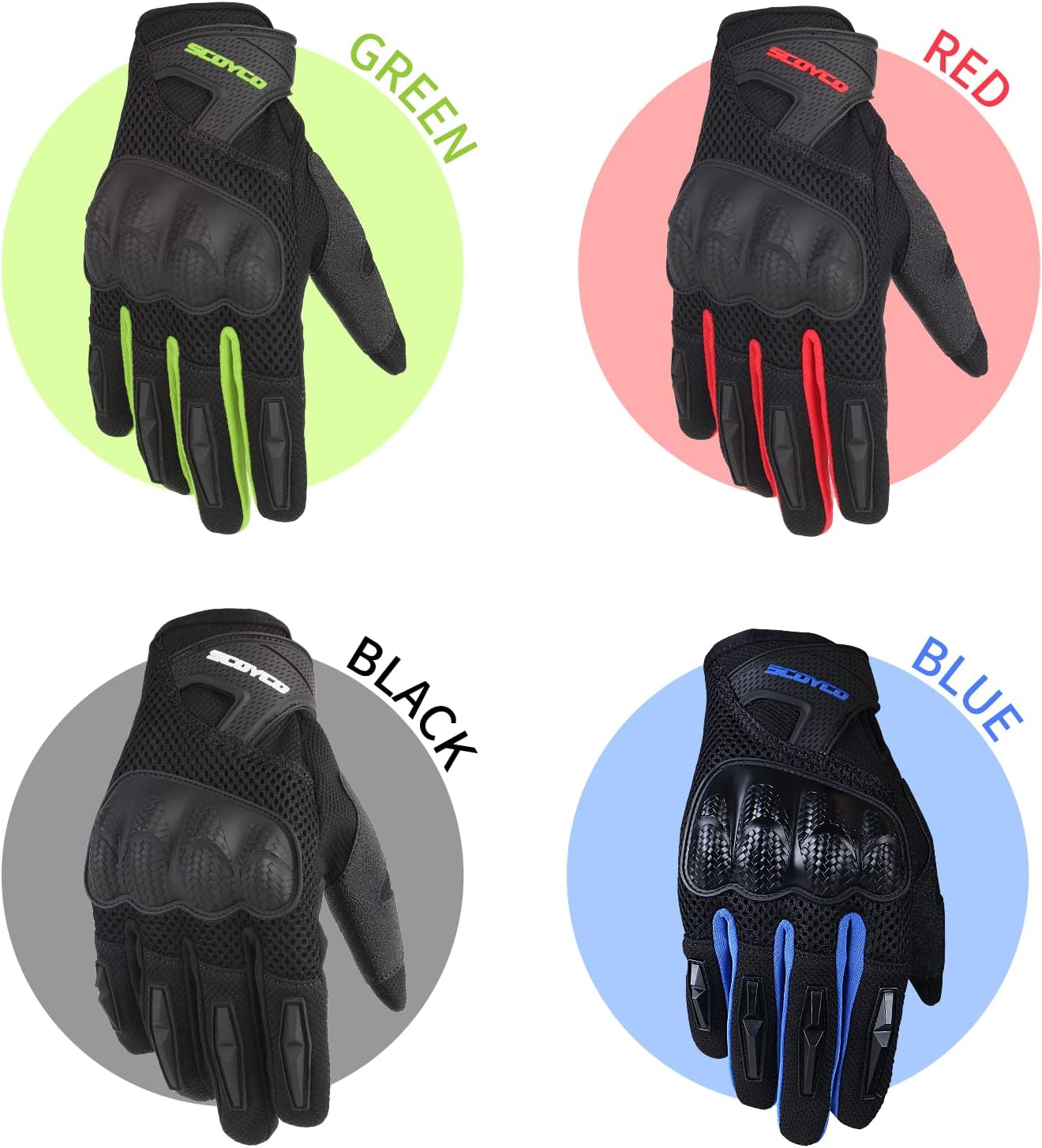 Scoyco Summer Motorcycle Gloves Full Finger Cycling Work Gloves Knuckle Guard Touch Screen Motocross Racing Gloves for Men BMX ATV MTB Riding