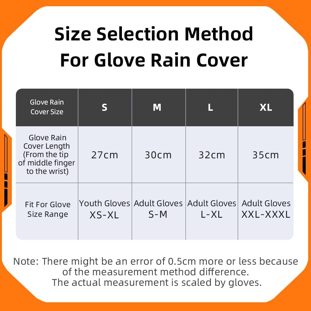 Size L, Rain Cover Length 32cm,Fit for Glove Size Range: Adult Gloves L – XL .