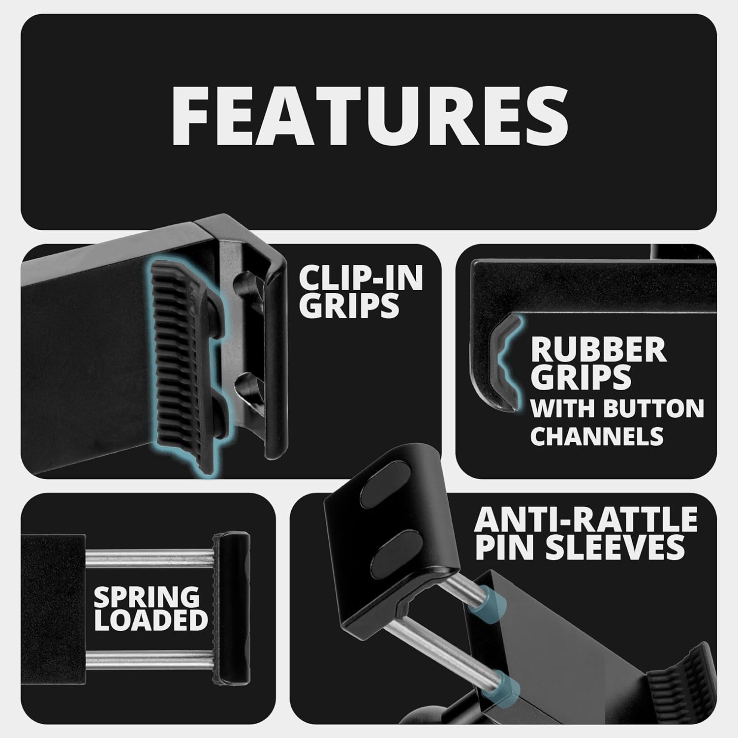 CLIP-IN GRIPS: Traditionally, our previous generation phone cradle utilized double-sided 3M tape to secure the grips onto the cradle, a method commonly employed by other brands with similar-looking holders. However, in high temperatures, the double-sided tape could loosen, causing the grips to peel away. Our Clip-In Grips address this issue.