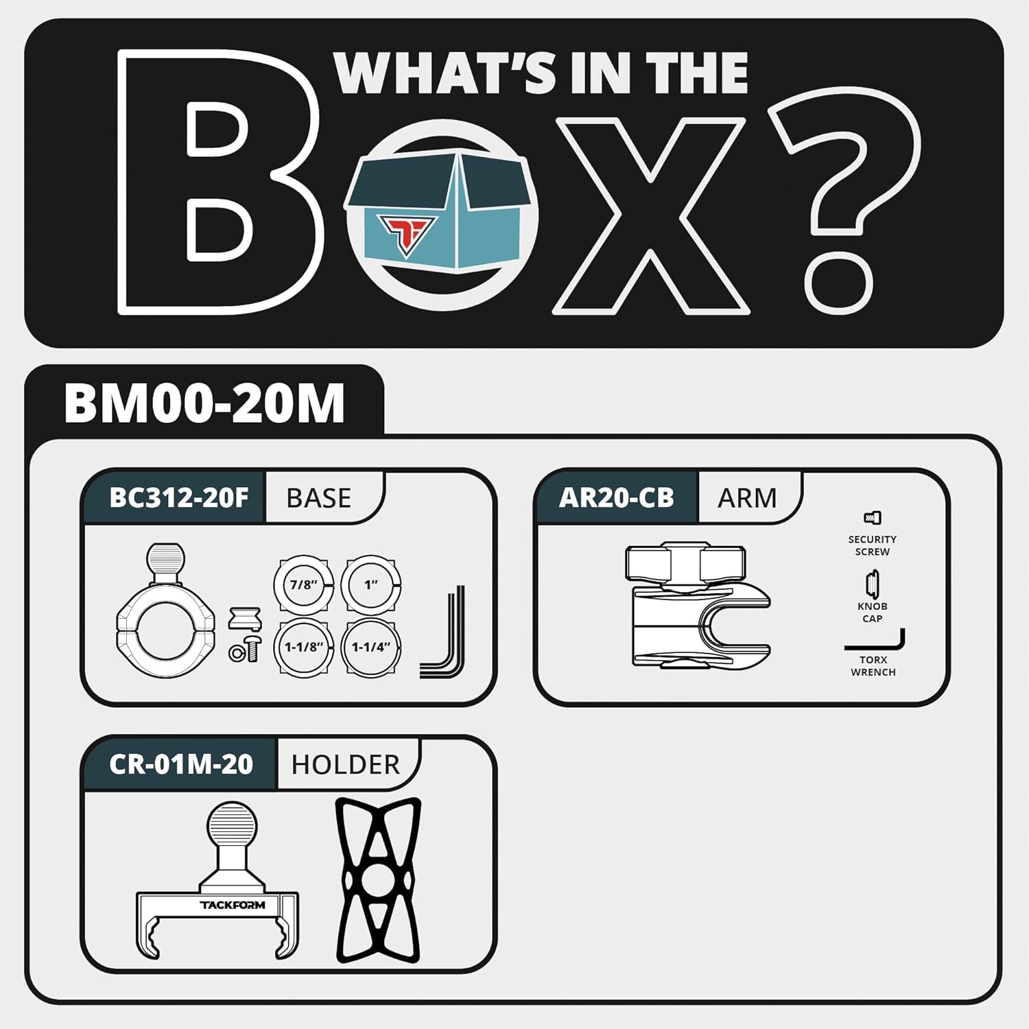 TACKFORM 20 SERIES: Specifically designed for compatibility with Tackform’s 20 Series Platform, revolving around the 20mm ball and socket system. While compatible with other 20mm products, our parts stand out for their tested durability and engineered load capacities, featuring a safety factor not guaranteed by other manufacturers. Please Note: Not suitable for 25.4mm / 1” / B-Sized balls.