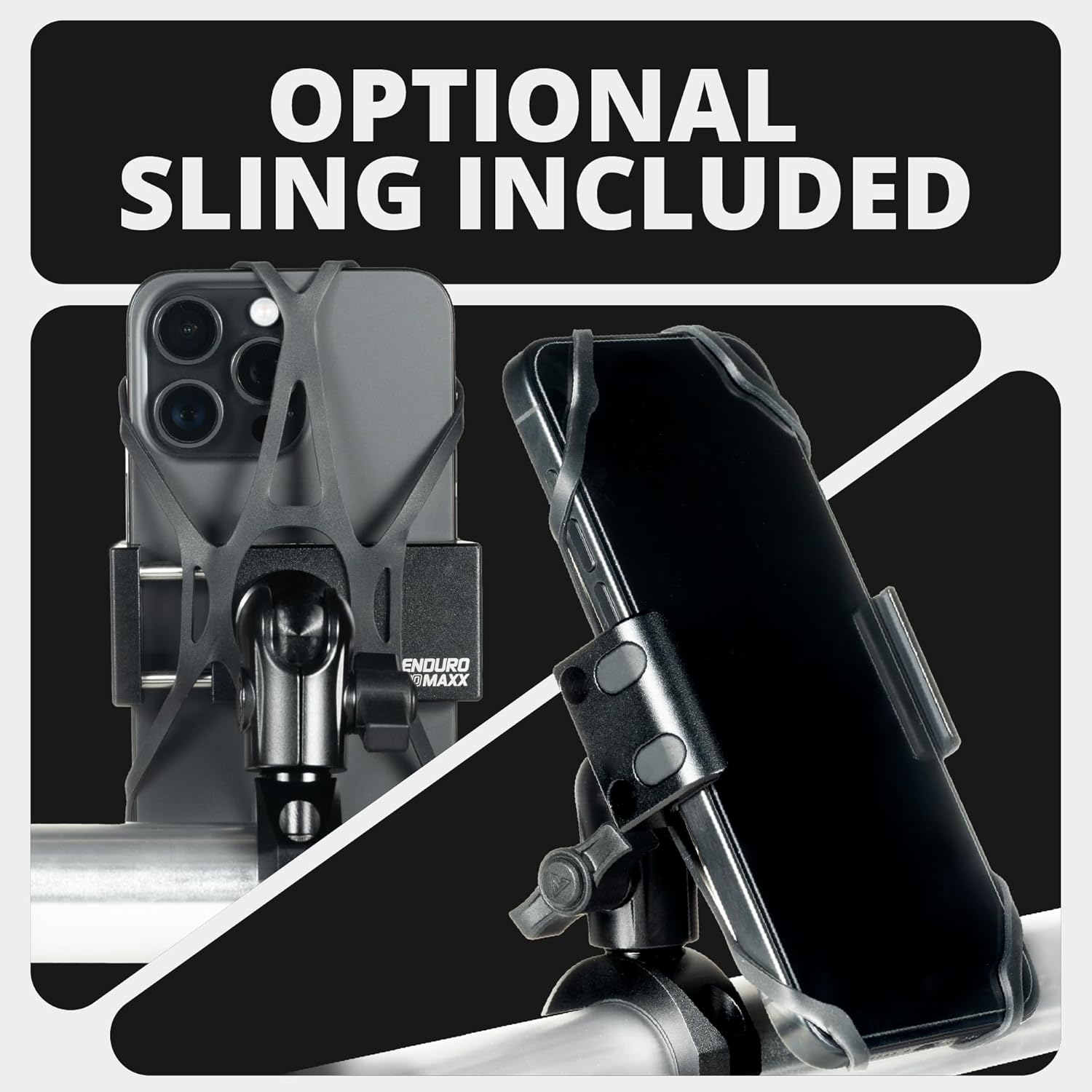 All Enduro Series Motorcycle Kits are designed for flawless operation without the need for a silicone tether. However, if you’re looking for some extra security and peace of mind while riding, the included Sling will do the trick. Made of a High-Elasticity premium rubber, this design will keep your phone securely seated in the cradle, even on the roughest terrains.