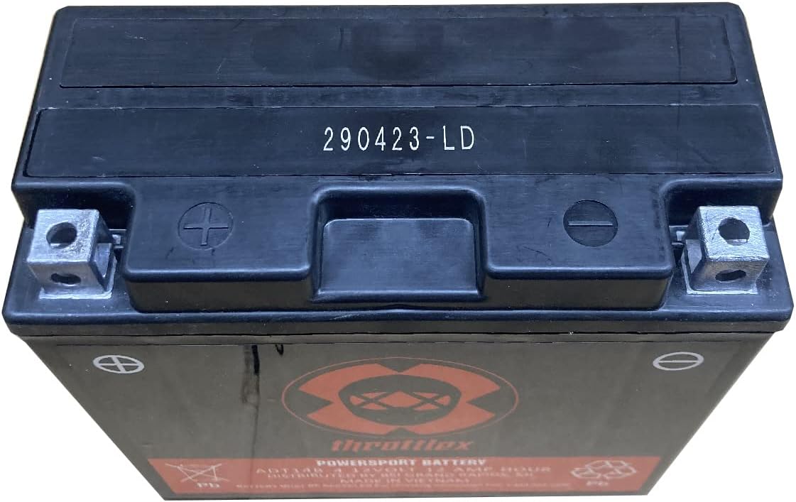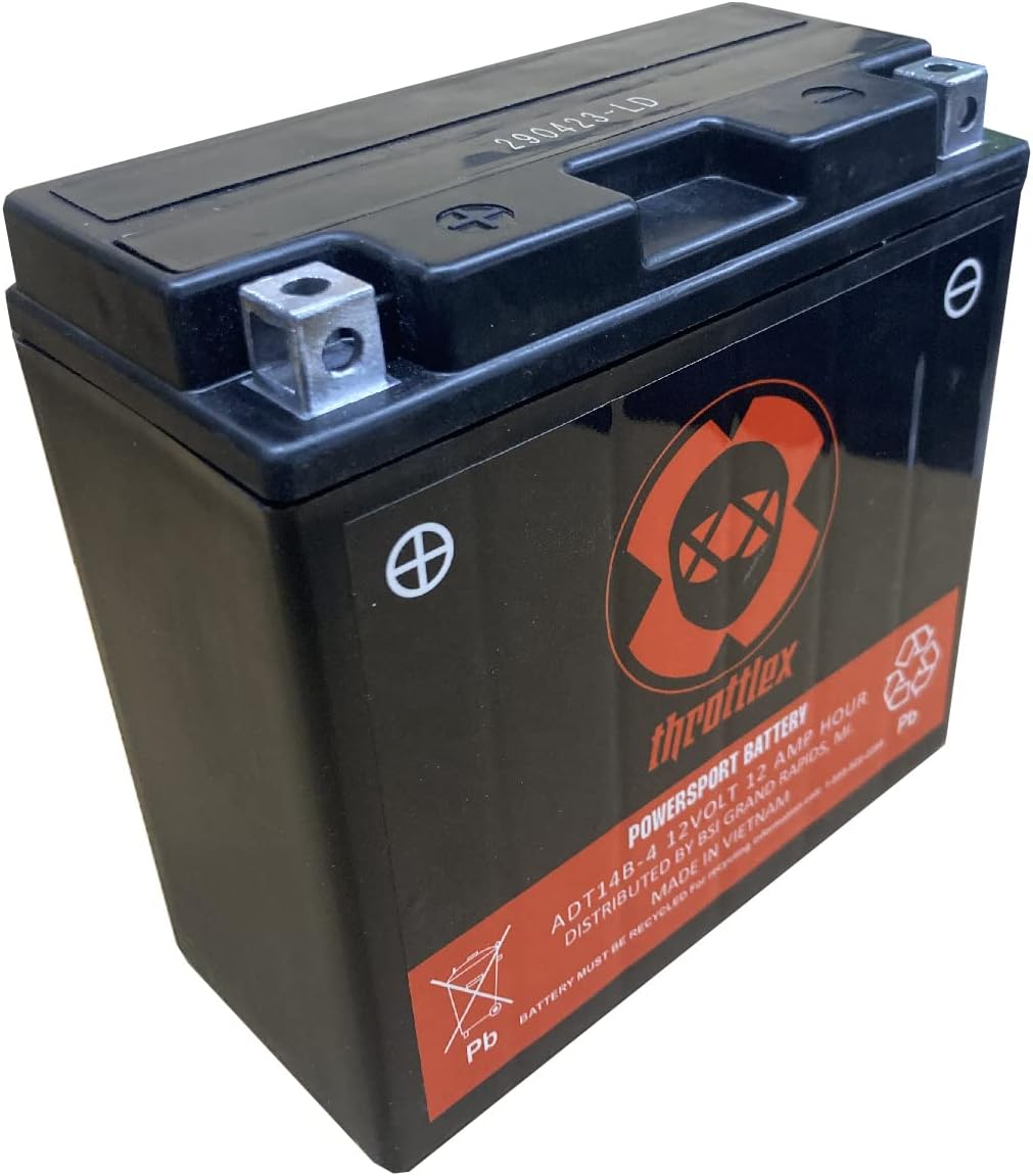 For above average power and longer battery life, the ADT14B-4 is the perfect choice. This AGM (Absorbed Glass Mat) battery is maintenance free, sealed and non spillable. It never needs refilling and meets, or exceeds, the power demands of your ride. The spill proof heat selaed cover means no leaks and the sulfation resistant plates provide longer battery life. Because the ADT14B-4 is a premium sealed battery it holds voltage longer which means this battery is ready when you are. The ADT14B-4 meets, or exceeds, the specifications of your rides original battery. Using the highest quality materials and workmanship available allow the ADT14B-4 to enjoy an extended life and extremely low discharge rate. This factory fresh battery is guaranteed to fit your ride and perform beyond your expectations. It is shipped fully charged and ready to install out of the box. With ThrottleX just buy and ride. With Confidence!