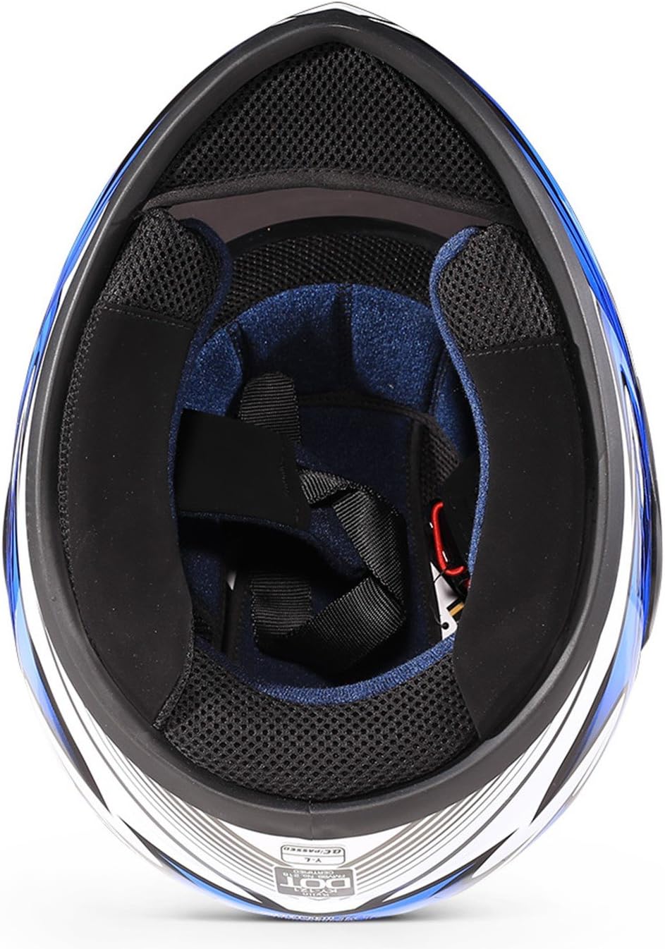 Typhoon Helmets Youth Kids Full Face Snowmobile Helmet DOT Dual Lens Snow Boys Girls – Blue (Medium)