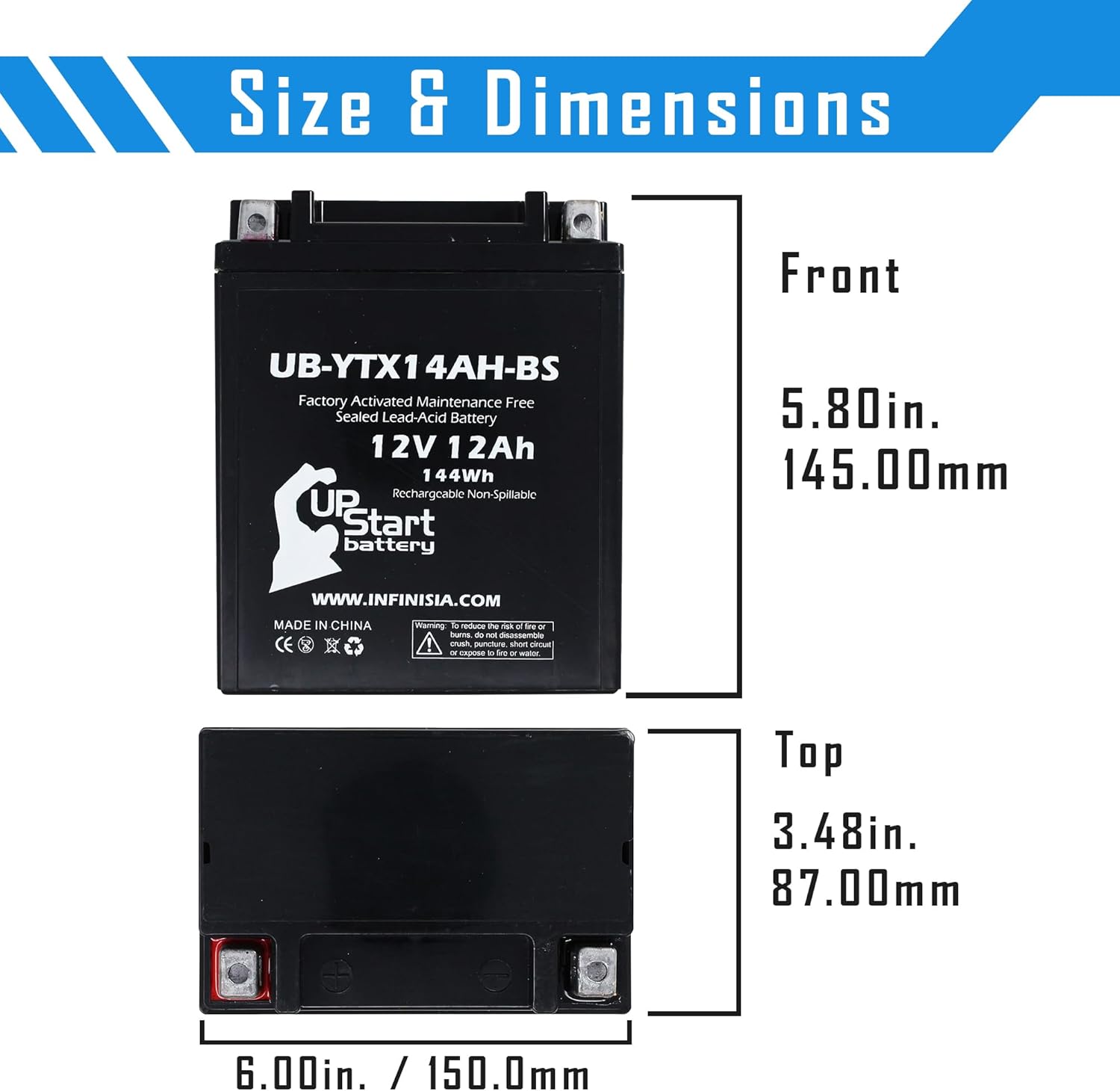 Please note: This is an UpStart Battery brand replacement part, not an OEM product. This product is not affiliated with any OEM brands and is not covered under any warranties offered by the original manufacturers. Any warranties for this product are offered solely by Upstart Battery. All mentions of brand names or model descriptions are made strictly to illustrate compatibility. All brand names and logos are registered trademarks of their respective owners.