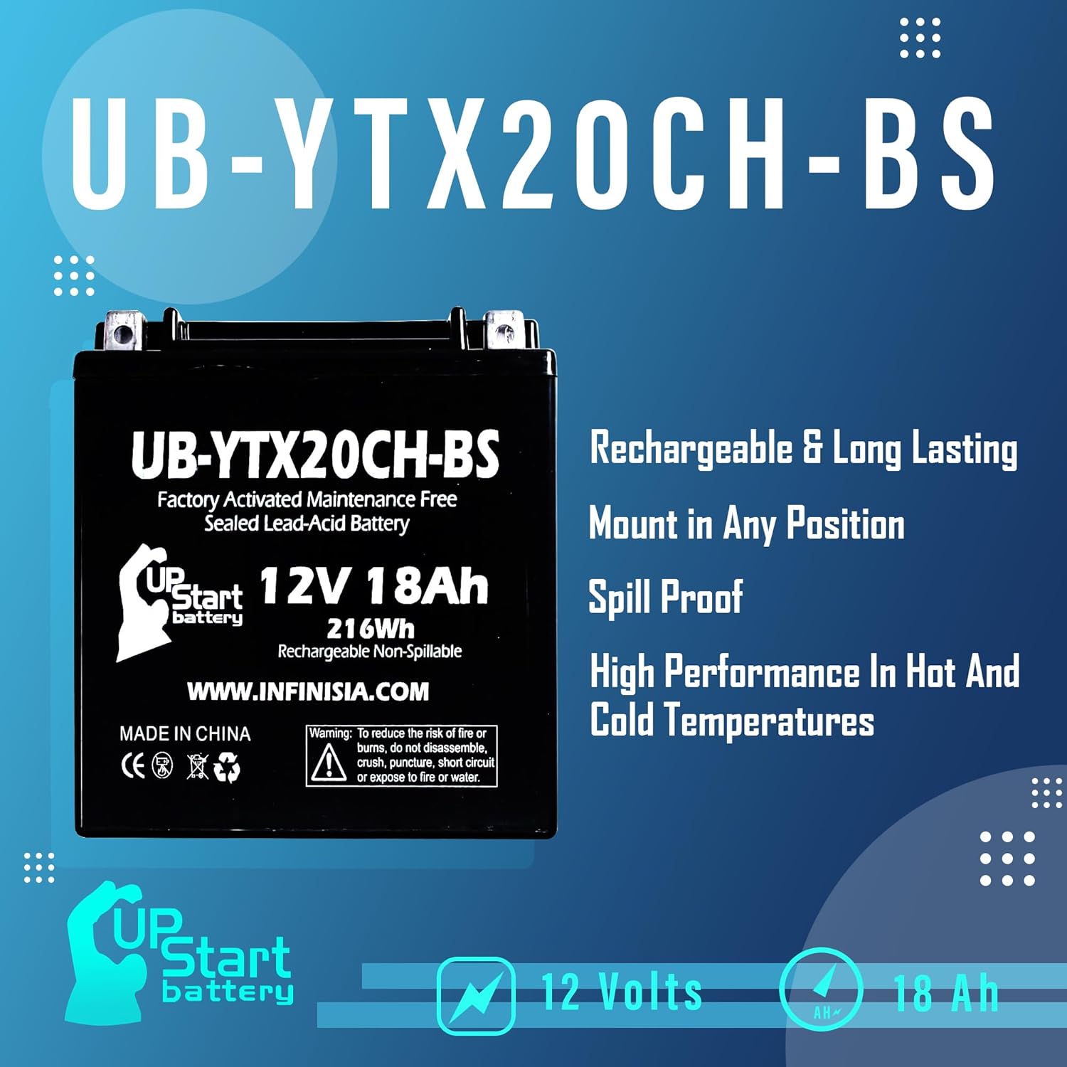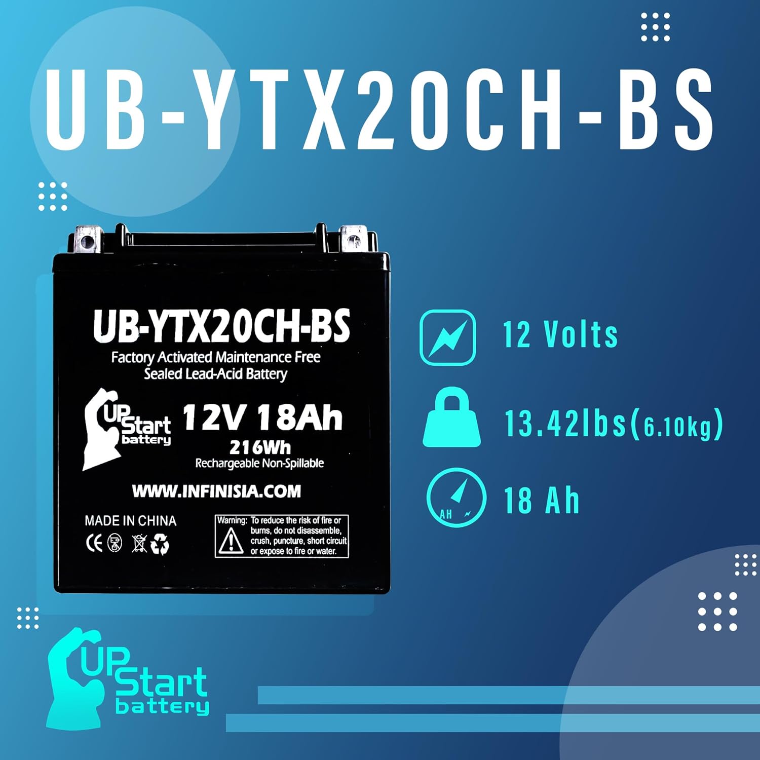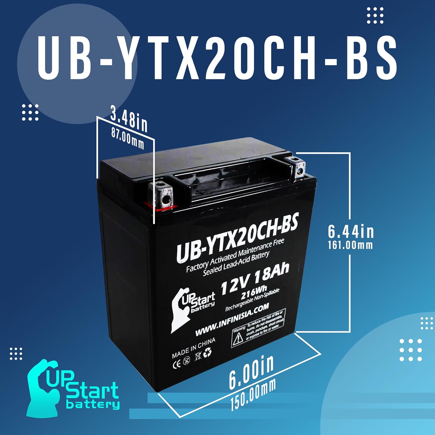 UB-YTX20CH-BS Battery Replacement for 2013 Suzuki LT-A500X King Quad 500 CC ATV – Factory Activated, Maintenance Free, Motorcycle Battery – 12V, 18AH, UpStart Battery Brand