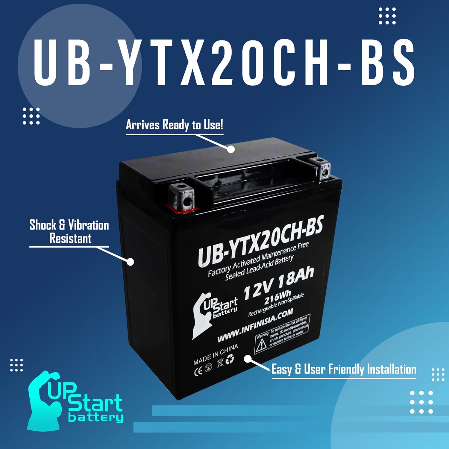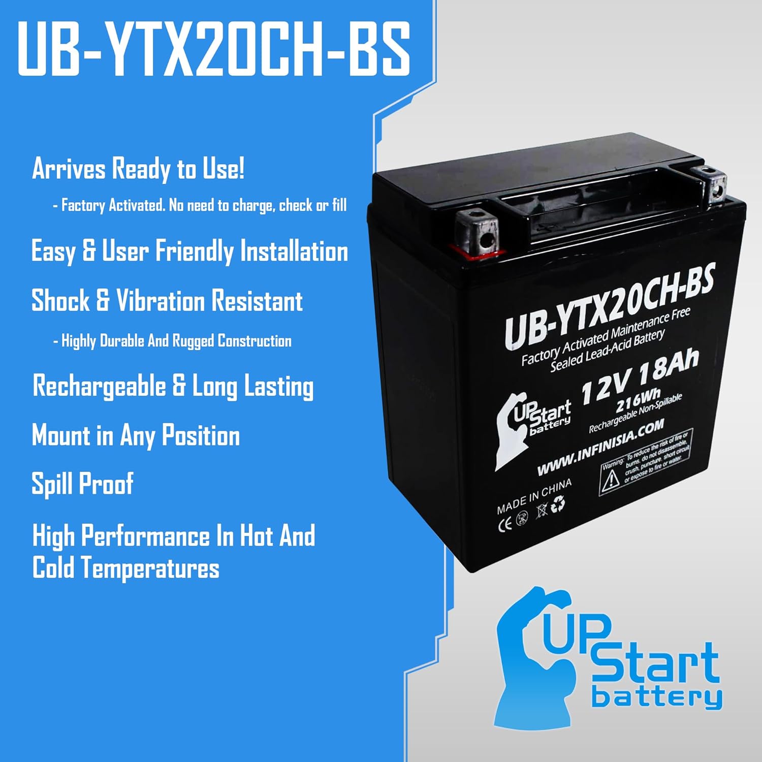UB-YTX20CH-BS Battery Replacement for 2016 Kawasaki VN1700 Voyager, Nomad, Vaquero 1700 CC Motorcycle – Factory Activated, Maintenance Free, Motorcycle Battery – 12V, 18AH, UpStart Battery Brand