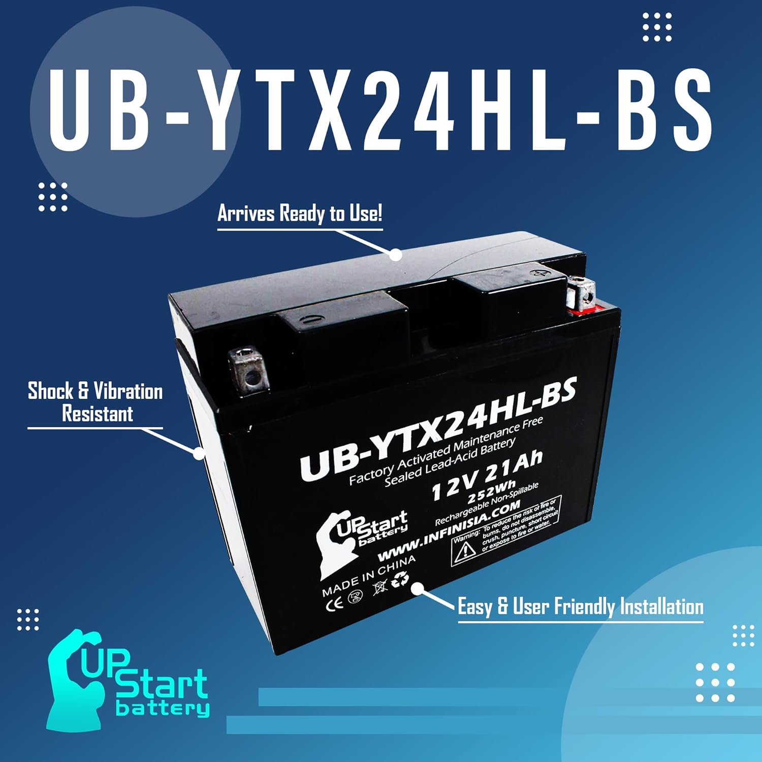 UB-YTX24HL-BS Battery Replacement for 2005 Arctic Cat Panther 570 500 CC Snowmobile – Factory Activated, Maintenance Free, Motorcycle Battery – 12V, 21AH, UpStart Battery Brand