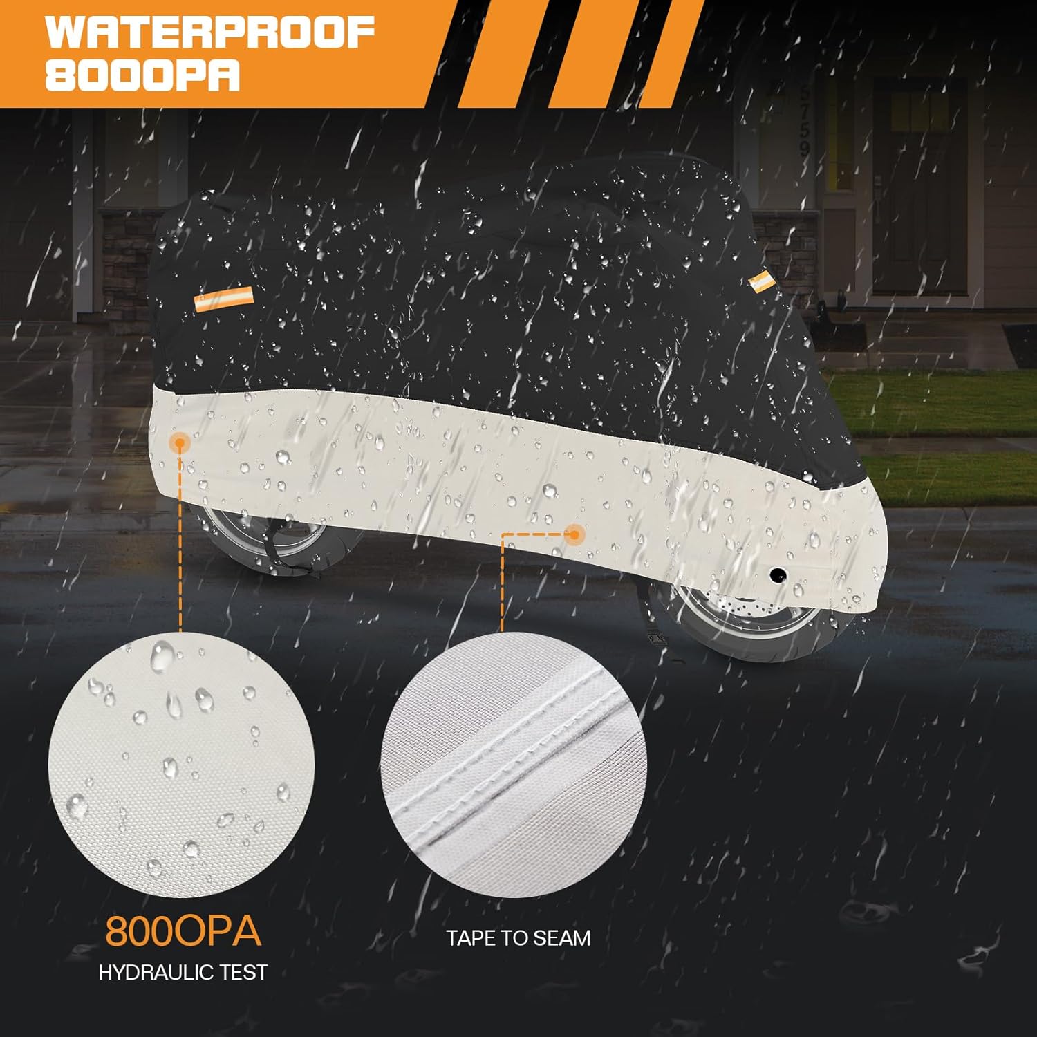 All-Season Performance: Whether it’s rain, shine, or snow, this waterproof motorcycle cover is built for all seasons. Keep your bike in top condition year-round.