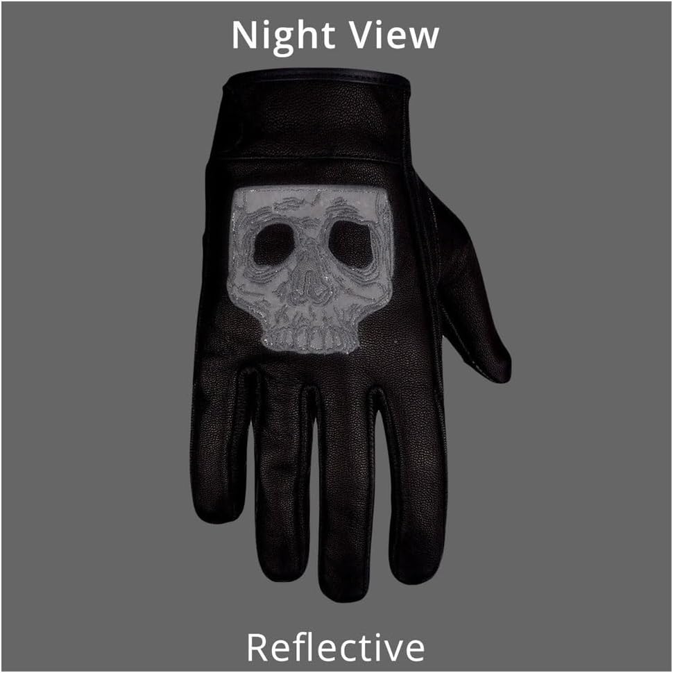 Vance Leather Premium Leather Motorcycle Glove, Riding Gloves with Reflective Skull Design, Gel Palm, Touchscreen Capability