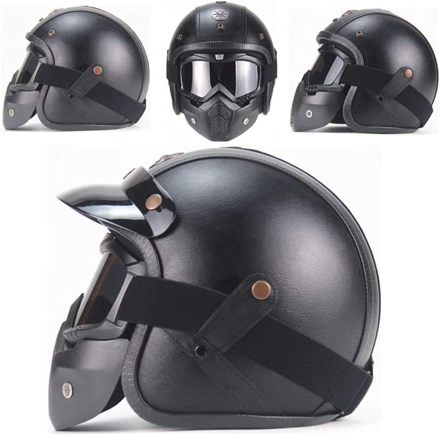 Vintage German Style 3/4 Open Face Motorcycle Helmet with Goggles DOT/ECE Approved Bike Cruiser Chopper Moped Scooter Retro Leather Half Helmets for Unisex-Adult