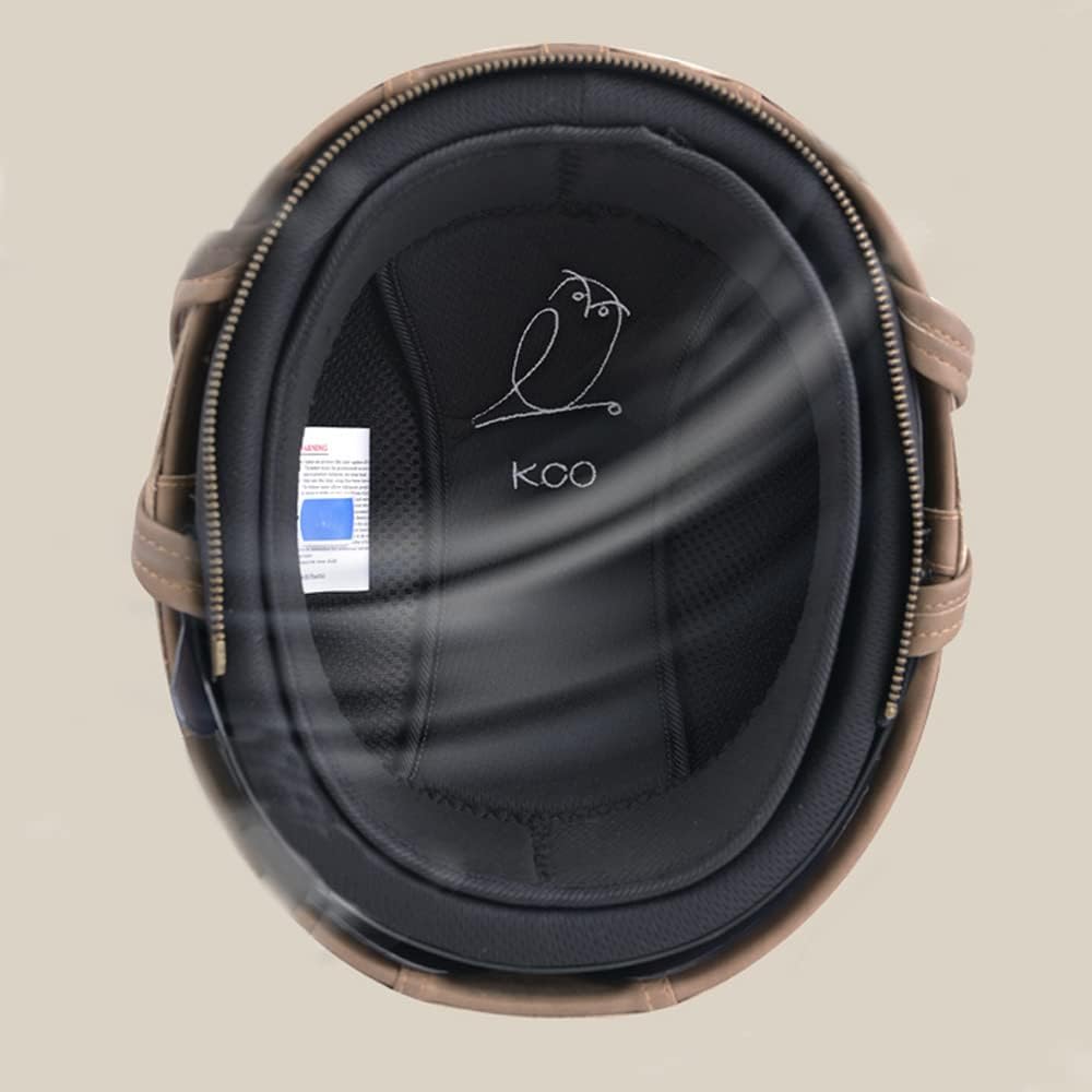 Vintage Leather Motorcycle Retro Half Helmet Men Women Adult for Scooter Bike Cruiser with Goggles and Drop Down Sun Lens