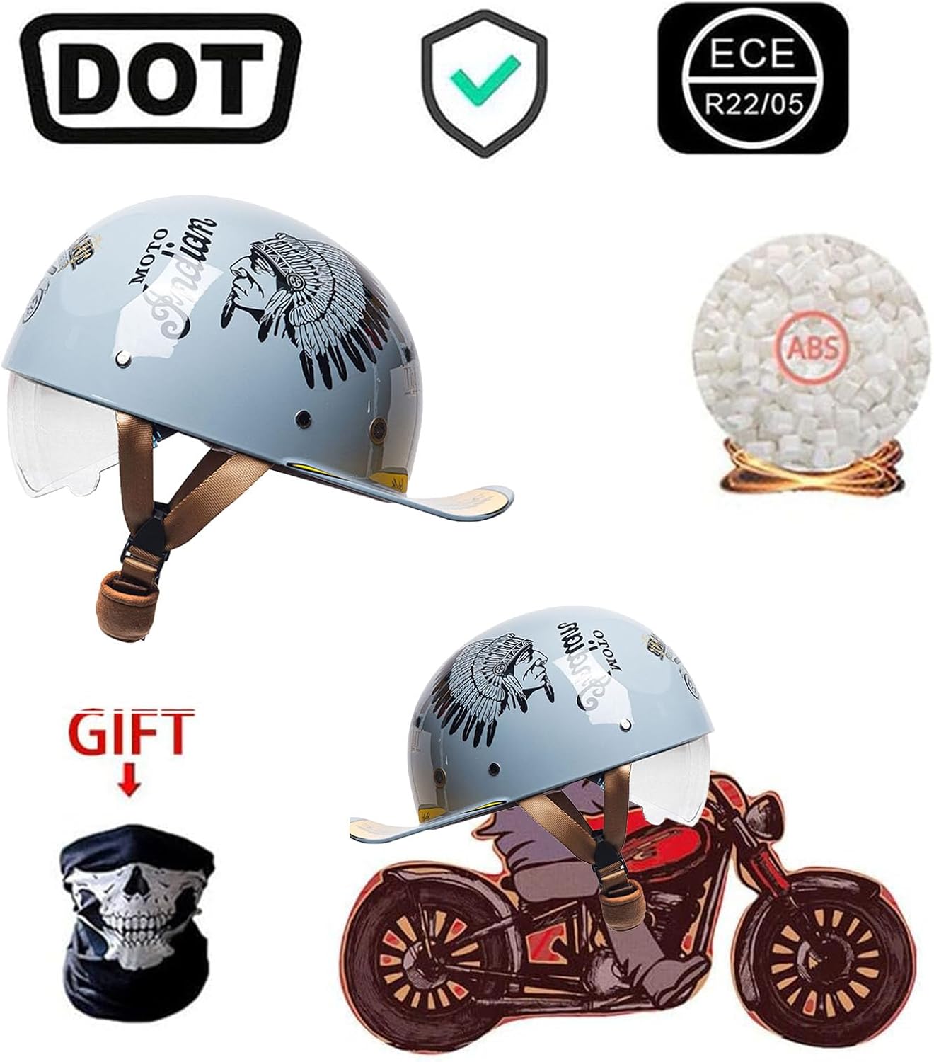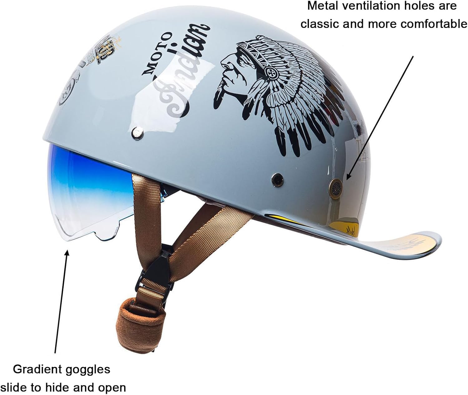 〖♥〗Humanized design: Retro lightweight semi-open helmet, baseball cap design, ABS material, extended brim, better sun protection and rain protection. The shape is simple and fashionable. Anti-stretch chin pad, soft and not strangle the neck, humanized design. Fashion retro, unisex, suitable for all seasons.