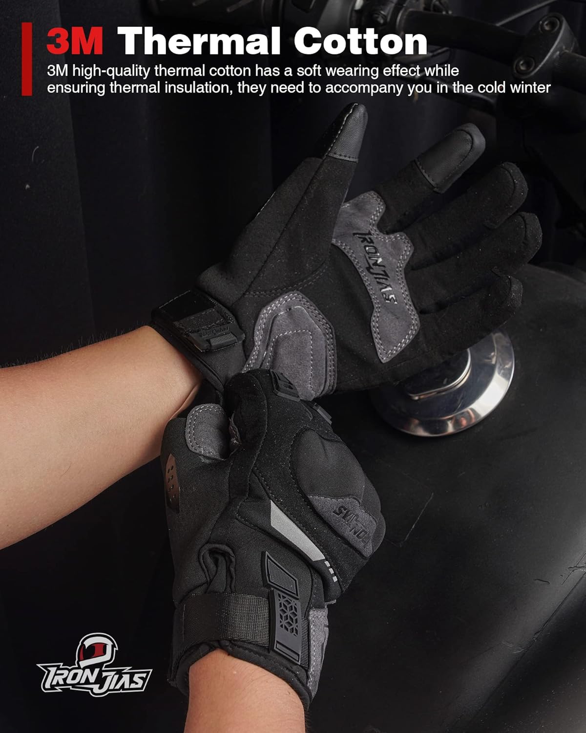 REINFORCED PALM PADS– This winter motorcycle gloves reinforced with the anti-slip palm pads affords great grip and feel with the motorcycle controls to avoid unnecessary injury