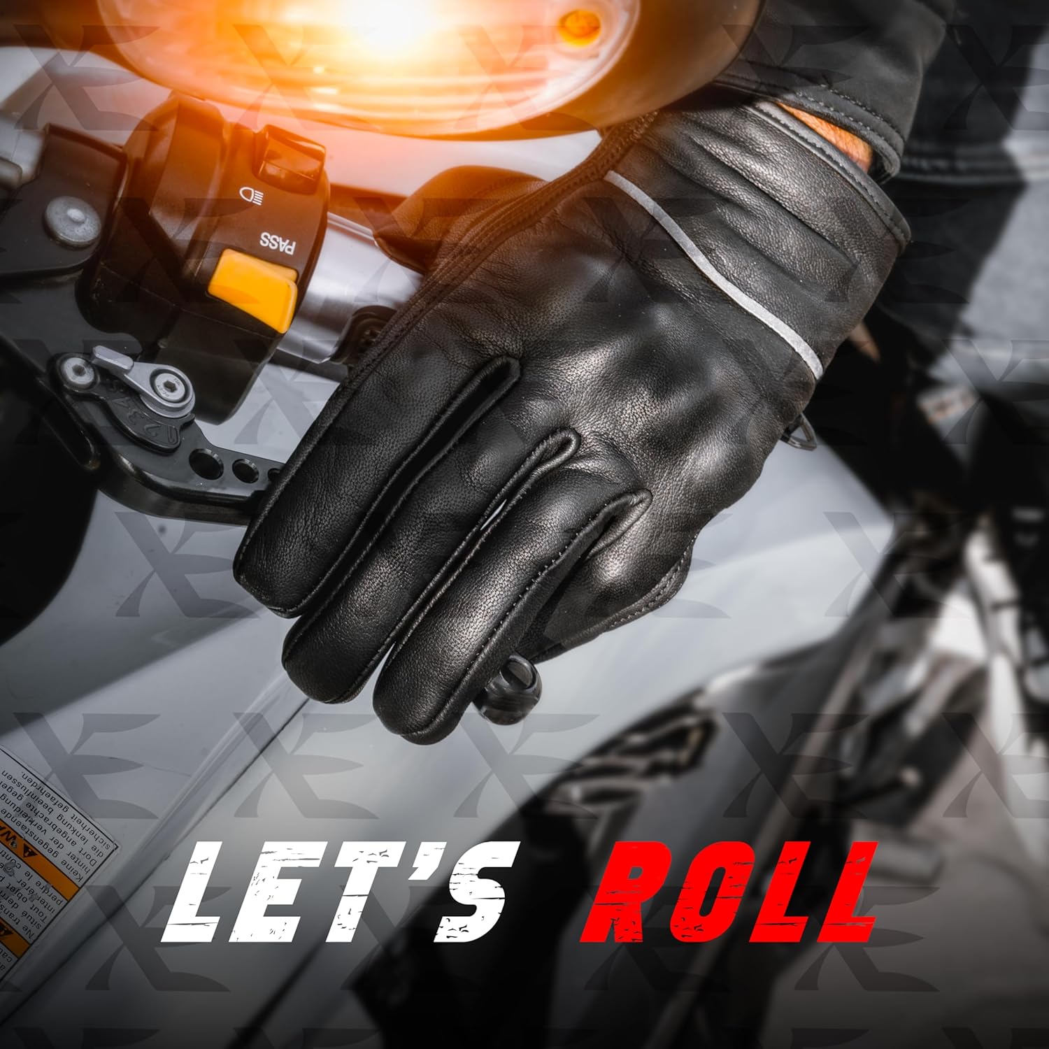 XE Black Leather Motorcycle Gloves – Ideal Full Finger Goat Skin Leather Touchscreen Motorbike Gloves for Men and Women – Powersports Protective Gear