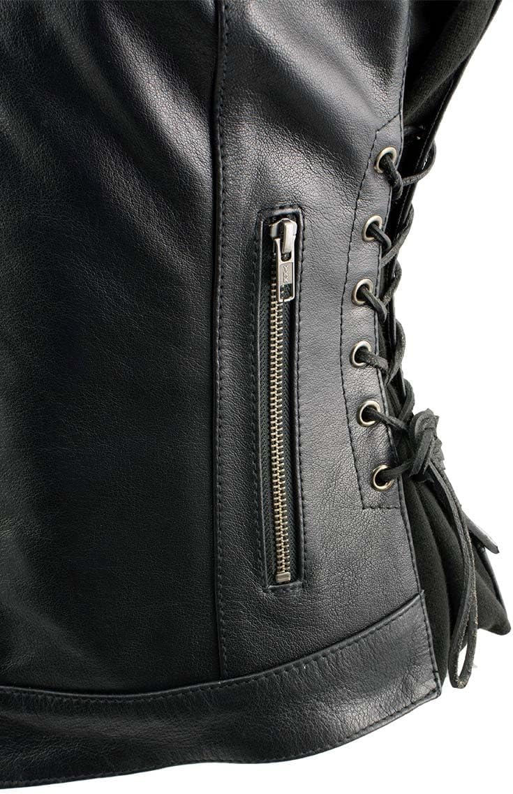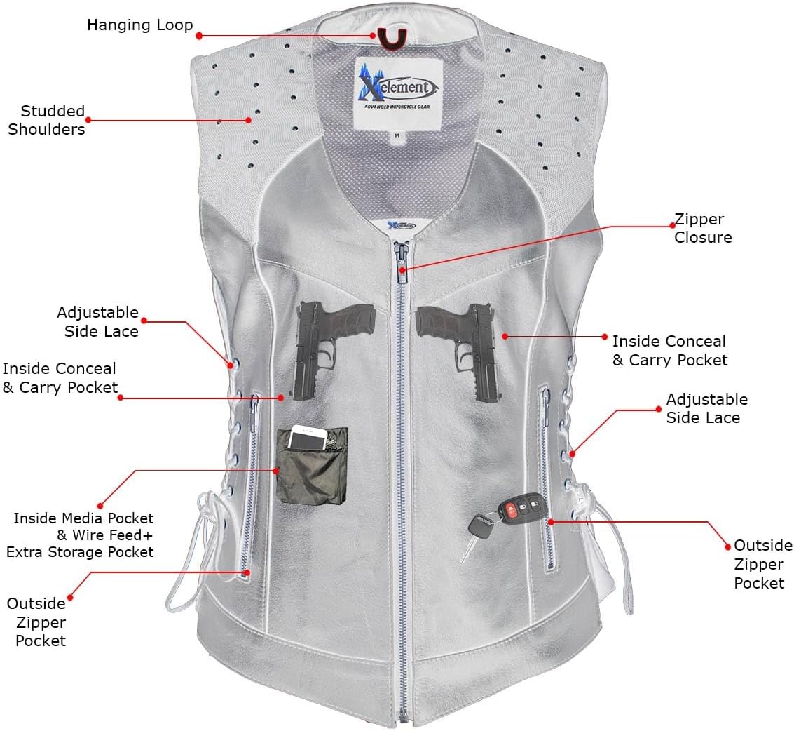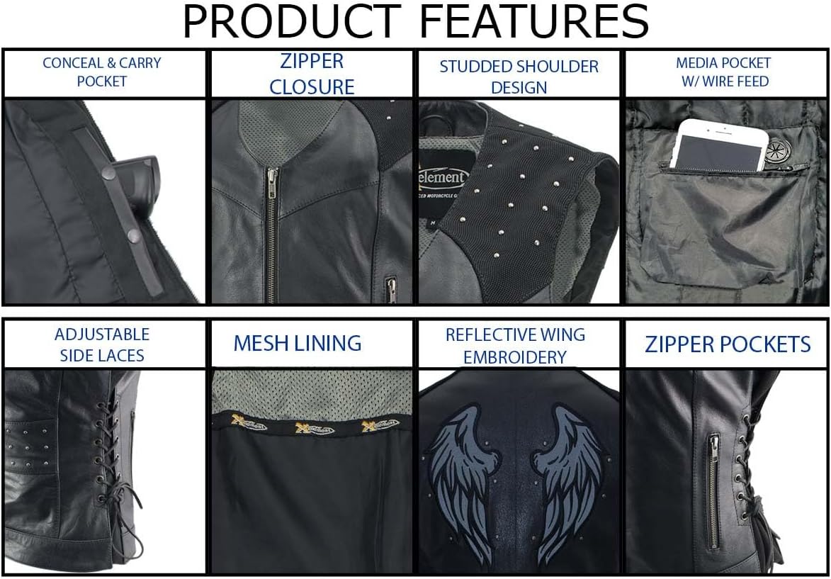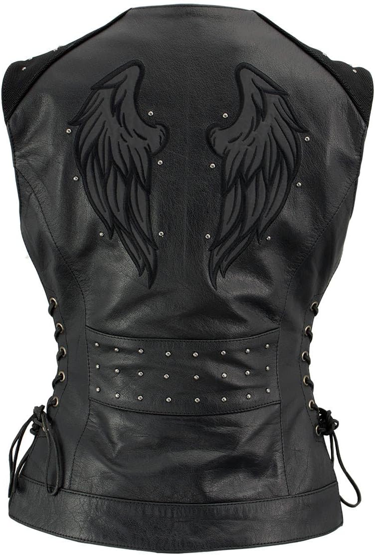 Xelement XS24001 Women’s ‘Winged’ Black Studded Motorcycle Rider Leather Vest with Reflective Wings – 2X-Large