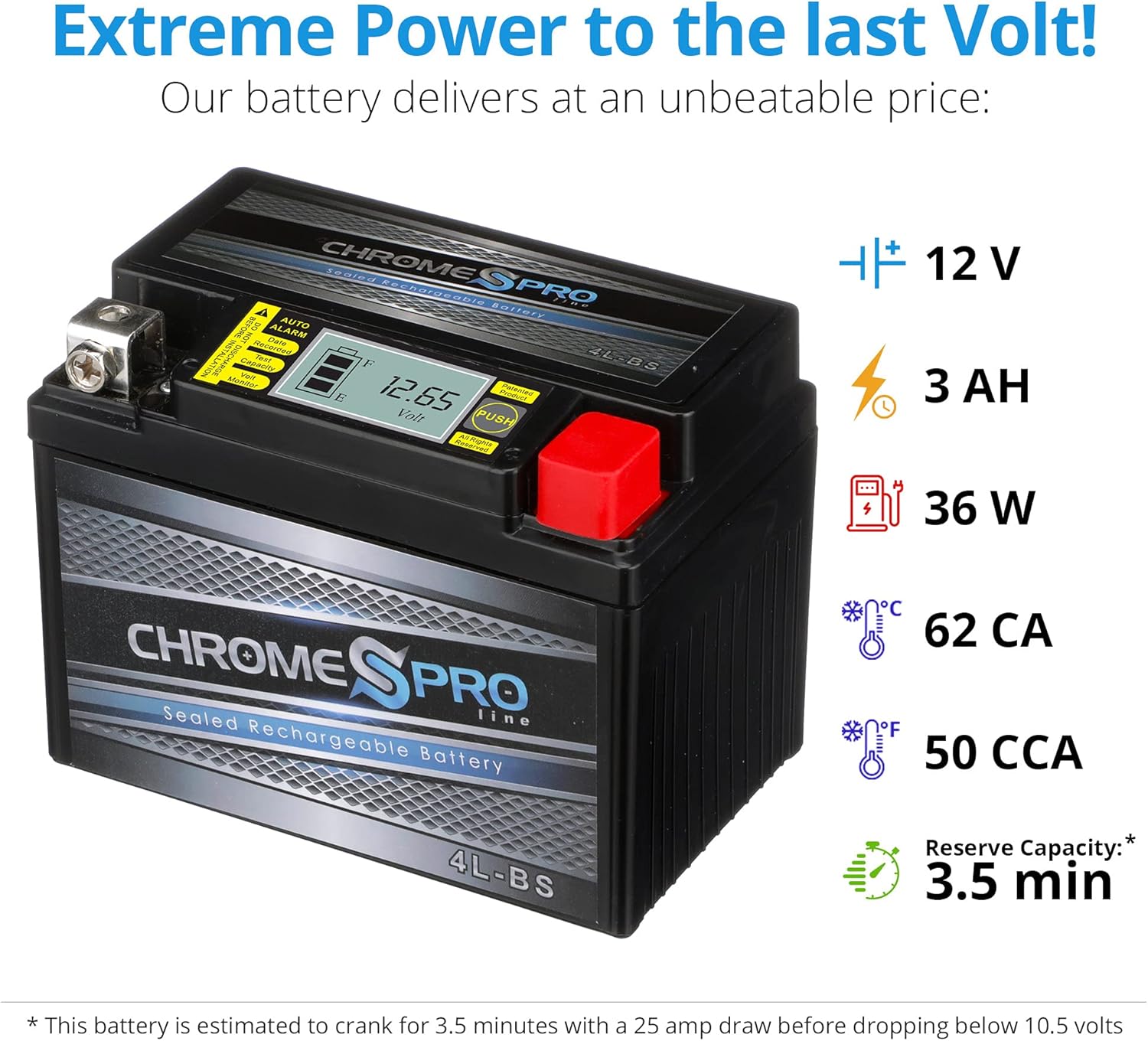 EASY APPLICATION: Chrome Battery batteries come fully charged and ready to go once delivered. Simply connect your battery to the application and you are ready to go.