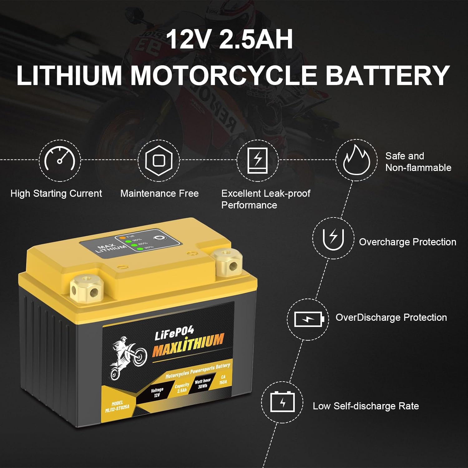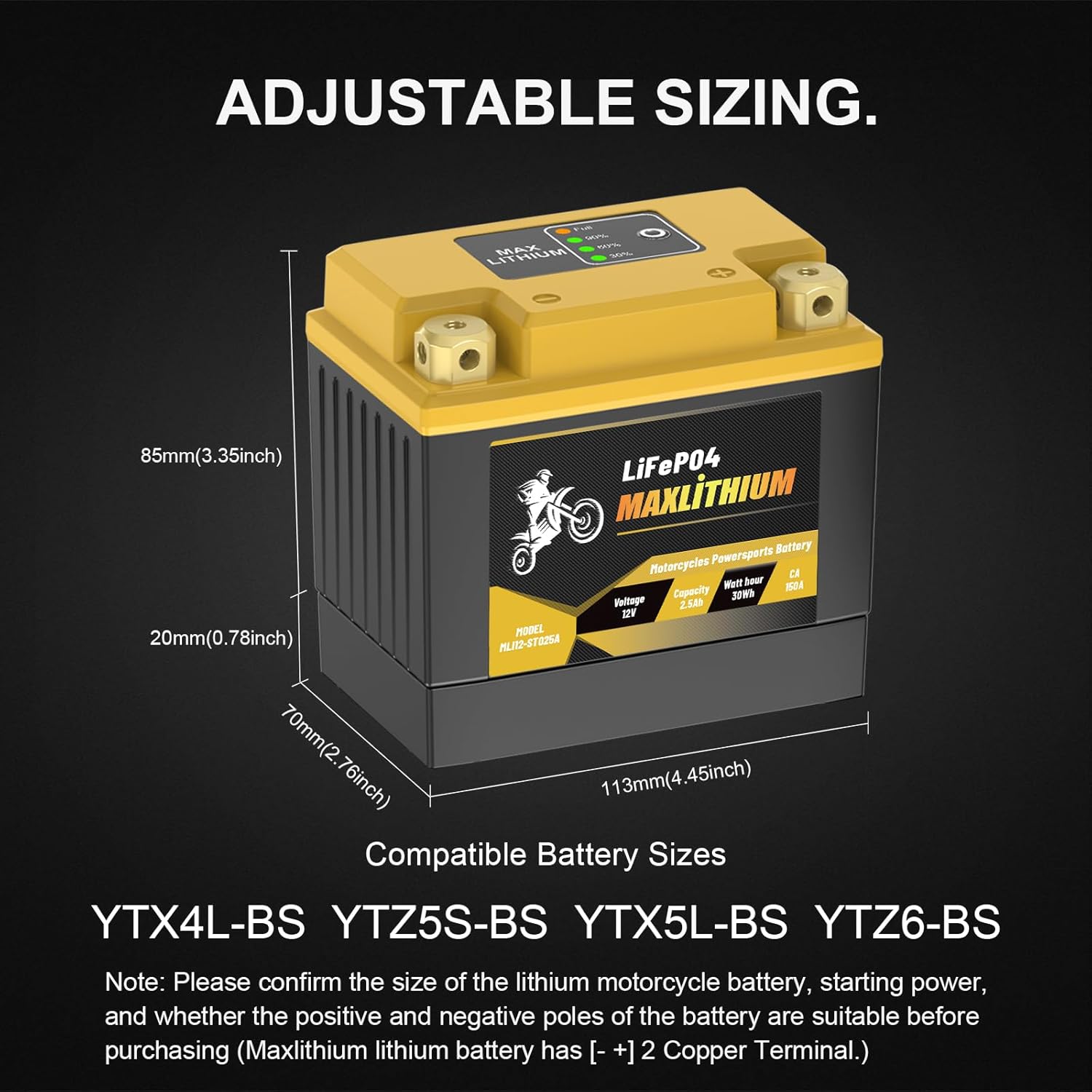 YTX4L-BS/YTX5L-BS Motorcycles Lithium Battery 12V 2.5Ah 150CA with Smart BMS, YTZ5S-BS/YTZ6-BS, Compatible with Small street Bikes, Dirt bikes, ATV, Scooter, Snowmobile, Motocross, Motorboat