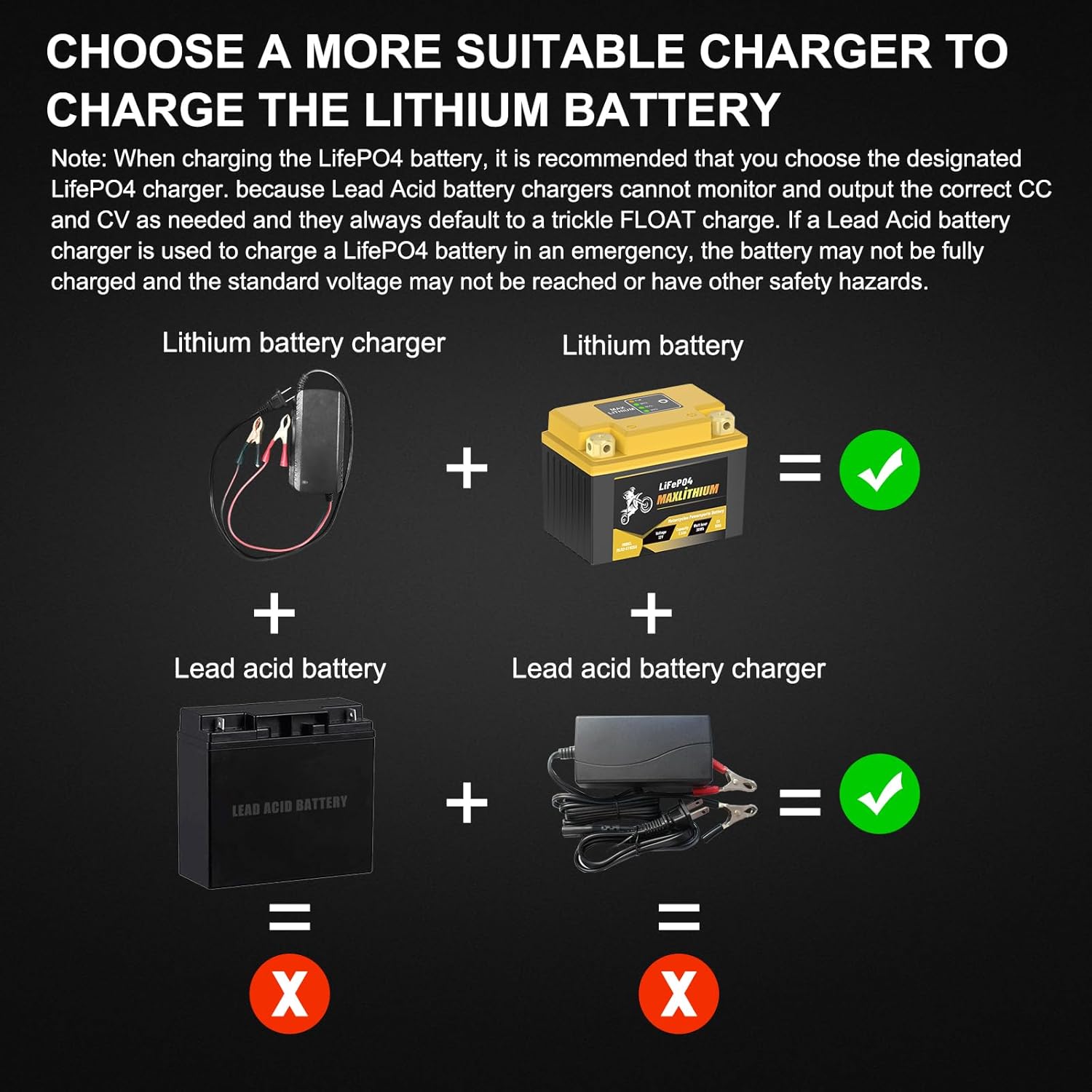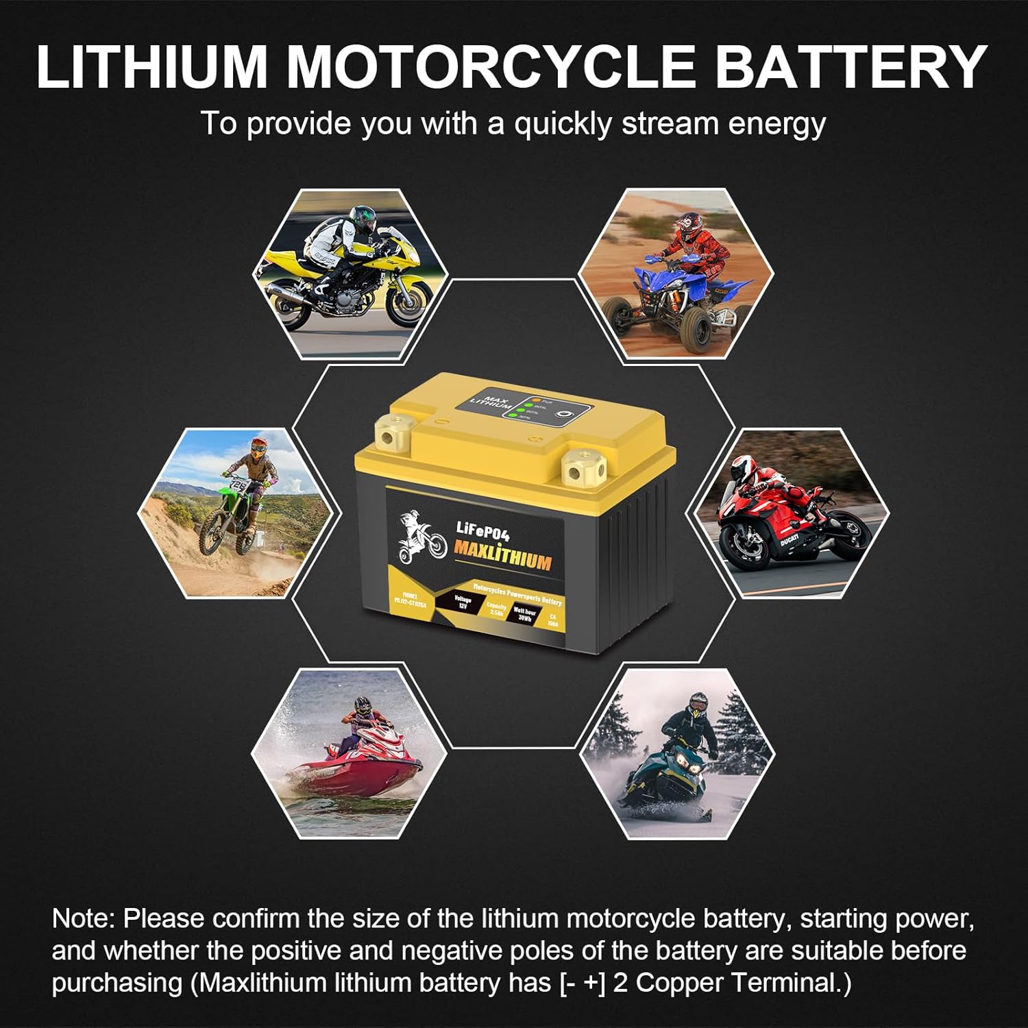 Wider compatibility: MaxLithium lithium iron phosphate batteries can replace most batteries: YTX4L-BS, YTX5L-BS, YTZ5S-BS, and YTZ6-BS; And it is compatible with most power sports brands – Suzuki, (Honda: MSX125), (Kawasaki: Z125PRO, Z125), KTM, Argo, Husqvarna, BRP, Waverner, Polaris, Vespa motorcycles, ATV, UTV, four-wheeled vehicles, jet skis, scooters, riding lawn mowers, generators, and so on.